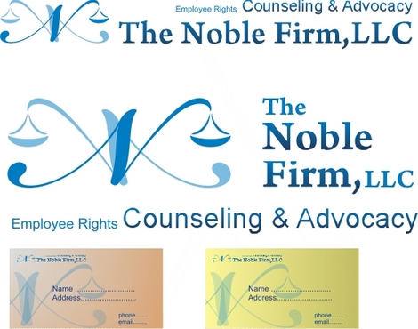 take a look at our current logo with the tagline "big firm skill, small firm service" on the top left of our current website: http://noblewrady.com/. I like that the actual logo symbol is out to the left and the firm name and tag line is a part of the entire picture, but located to the right side. I'm open to anything, but we choose this one out of hundreds from this site in a prior contest. I might very much like a new logo symbol with "The Noble Firm, LLC" next to it on the right (on top) and the tag line "Employee Rights Counseling & Advocacy" below it. The words "Employee Rights" might deserve a little special emphasis, as that's going to be the website name.
