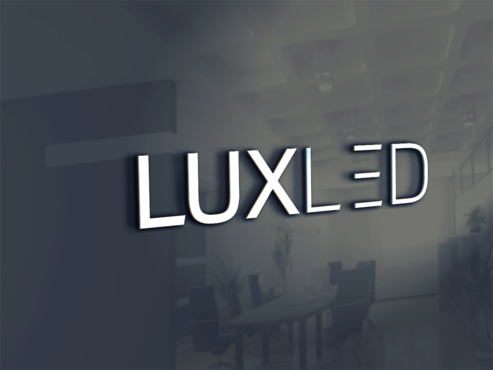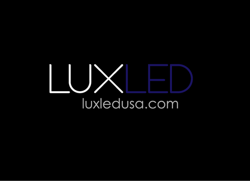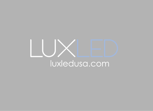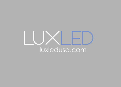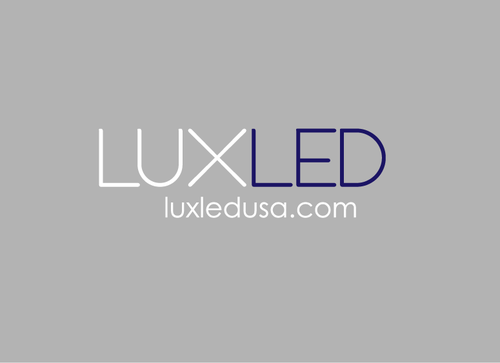 A logo that conveys light, bright, clean, simple yet powerful. Place "LUX" on top, smaller compared to word "LED" down at the bottom. LUX should be bright white, LED should be a light blue . Need some designs with a color background, maybe gray.