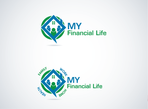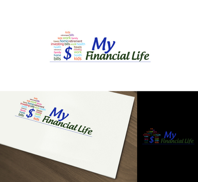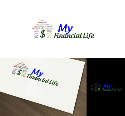 "My" needs to be emphasized, that is for certain. I was thinking of possibly a piggy bank with the words "family", "work", "home" & heath" inside of arrows each in a different color circling the bank symbolizing the circle of the financial life. Or something like having the outline of a house but instead of lines it would be made up of words referring to finances and a bold dollar sign in the middle of the drawing. Just spitballing here. A (very) rough sketch idea of each is uploaded. Don't feel the need to go just with those two ideas, I'm completely open to other concepts as well.