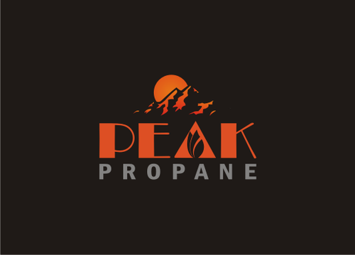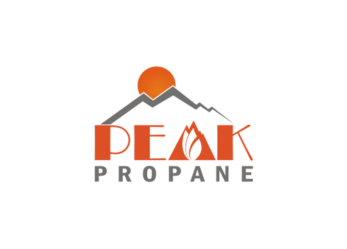 I like the basic concept of using a mountain as the "A" in Peak or a low, long mountain range above the text, possibly with a sun rising over it. Text should be all caps or small caps. Reference uploaded files. Text can be all in one line or peak on top of propane. The above ideas have caught my eye, but should not limit you if you can bring all the pieces together in some other way!