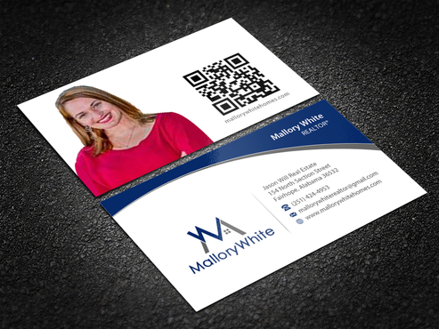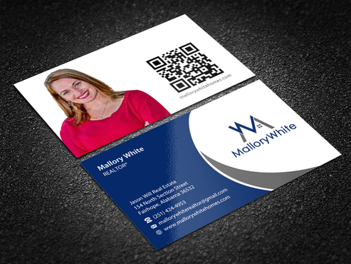 I want a reasonable size QR code on the back of card www.mallorywhitehomes.com along the bottom I'm still trying to think of a catchy phrase to put on the back