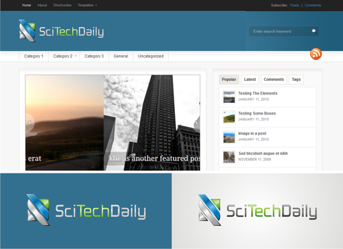 The logo is going to be used almost entirely on the web, so it can be full color and include shading, gradients, or 3D effects. The colors you select should be selected to work well with the mockup of the new site design: http://scitechdaily.com/mockup.png In particular the logo should be able to fit in where it says "LOGO HERE" matching the site, yet complementing the header background so it stands out.