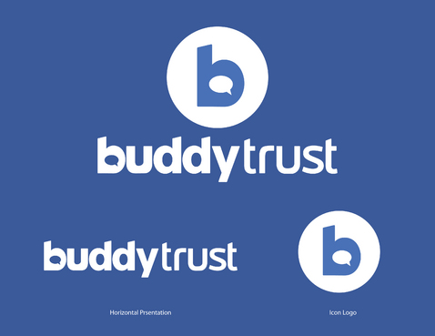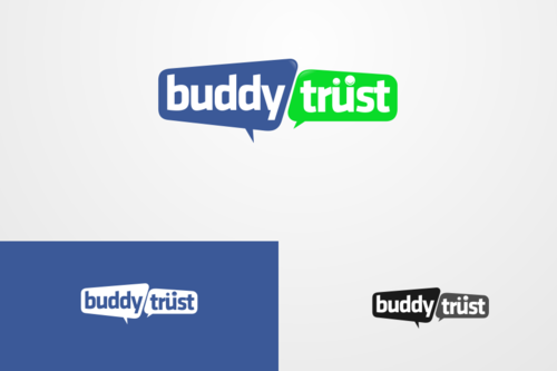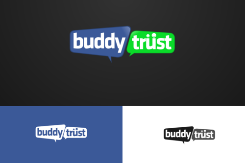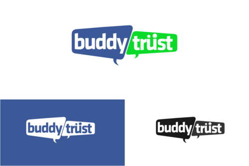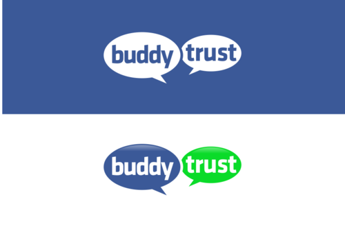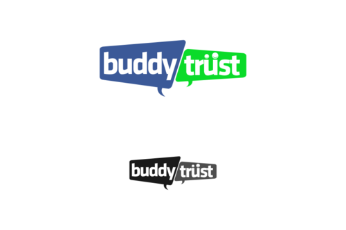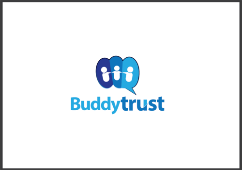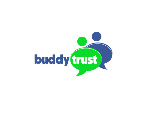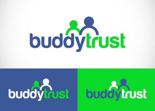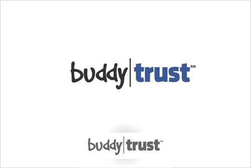 a few thoughts: have circles above the letters in the word "trust" that would look like heads and/or heads and arms. see the unum logo for an example. http://www.unum.com. Another thought may be to separate the words "buddy" and "trust" somehow with different colors, vertical line, box shape around one of the words, etc. We like all lower case letters.