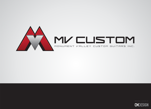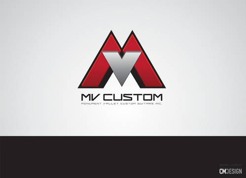 I build custom, hand crafted guitars in small quantities. I would like the M and V to tie into a mountain theme, try to incorporate the two letters together into this idea of mountain peaks with the word custom to the right and in much smaller font. I would like the MV to stand out and custom should be less prominent. Keep in mind that this logo will be used in a decal on the head stock of the guitar. A great example of how I would like to use this logo is the Fender logo on a Fender Stratocaster guitar. I'm not looking for anything wild or fancy, stick to modern looking, simple, clean lines and it's important that it's easy to distinguish the letters M and V in the design. When this logo is applied to the guitar head stock the letters MV will fit into an area 22 mm square, the word custom can extend to the right 25 mm.