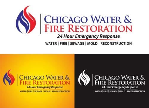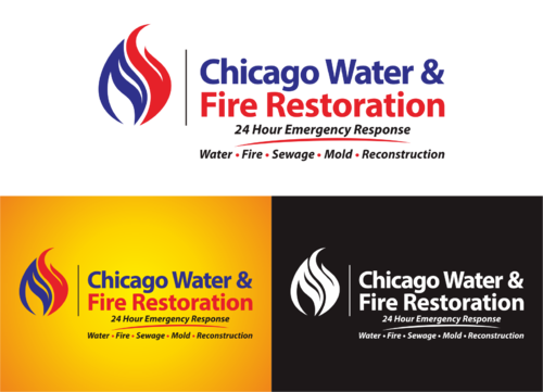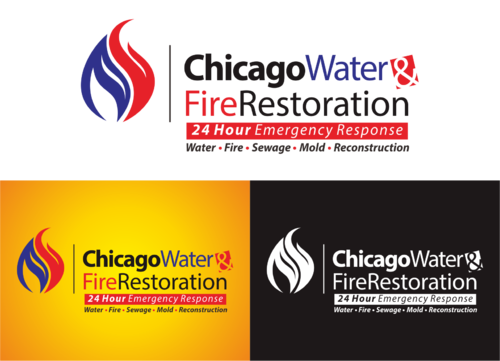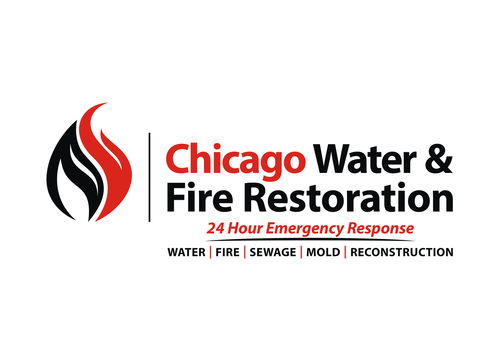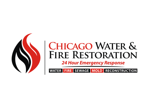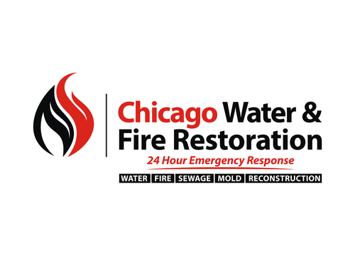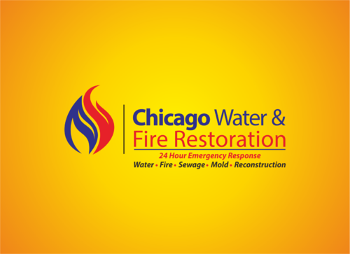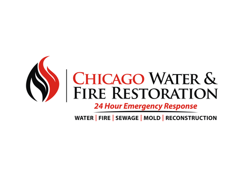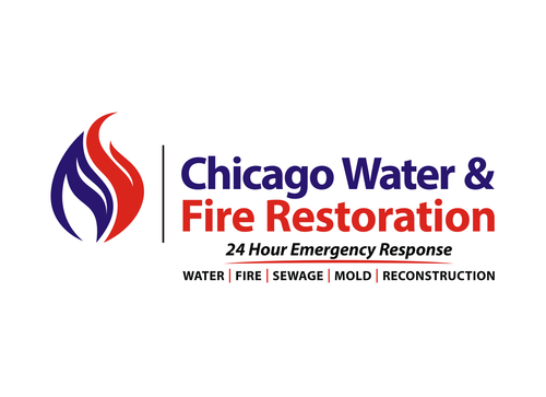 Chicago Water & Fire Restoration (two lines one on top of other separated at end of & symbol)