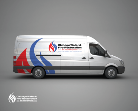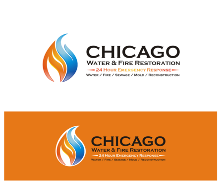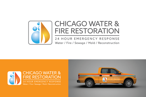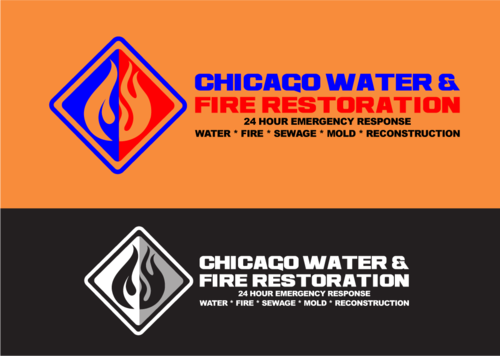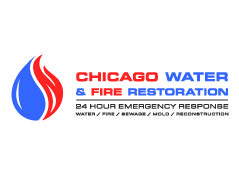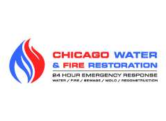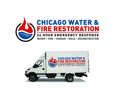 Chicago Water & Fire Restoration (two lines one on top of other separated at end of & symbol)