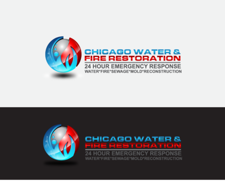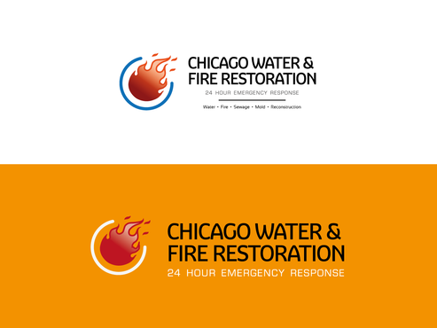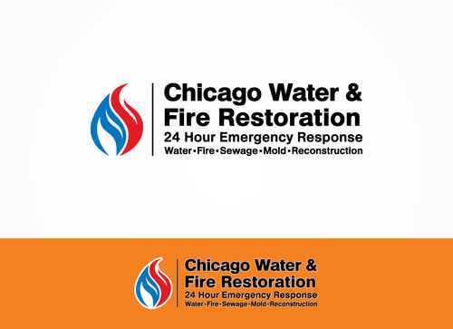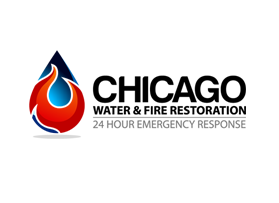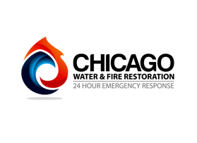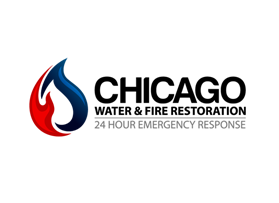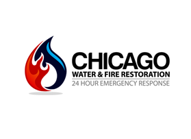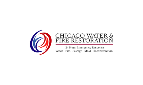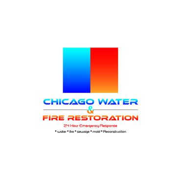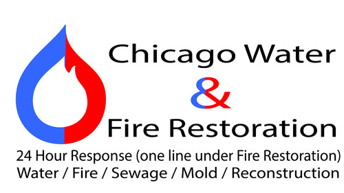 Chicago Water & Fire Restoration (two lines one on top of other separated at end of & symbol)