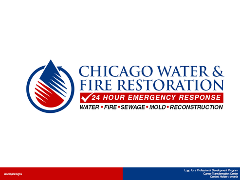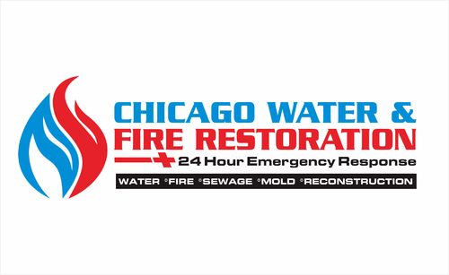 Chicago Water & Fire Restoration (two lines one on top of other separated at end of & symbol)