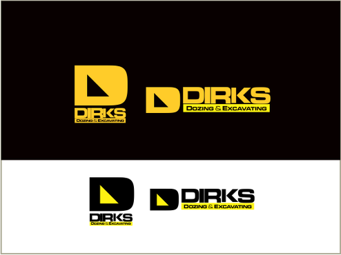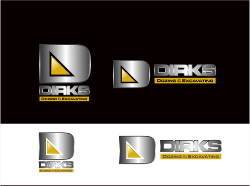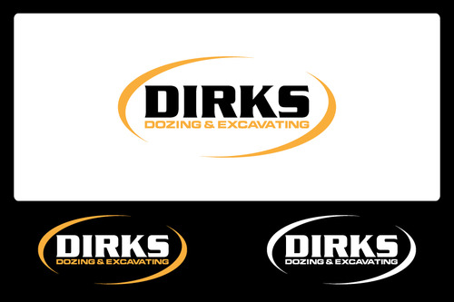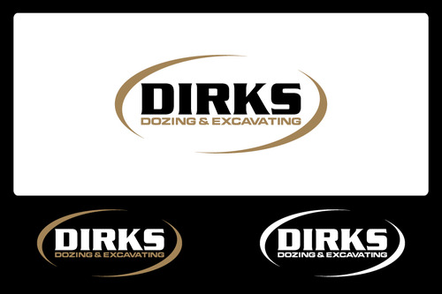 Would like to keep the large Dirks on top, eliminate the the Bulldozer and possibly replace with something more modern, emphasize the excavating equally or more prominent than the dozing, overall give it an updated look, need it to work well for light or dark backgrounds as well as embroidery on clothing.