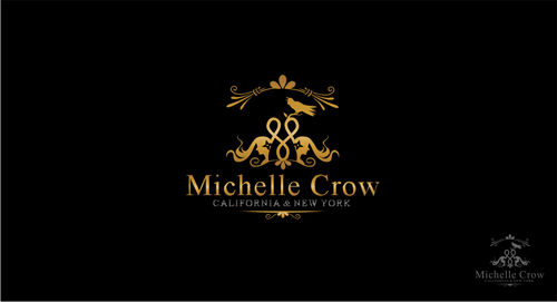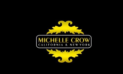 I wanted to use black and white with a very rich marigold. I thought because my name is Michelle Crow that black and white would reinforce the subliminal connection with the crow bird. I also like how striking and bright a rich gold looks with black. I wanted a bold color tied to my logo. Similar to how Tiffany & Co. has a robin's egg blue or Hermes has a very pumpkin color orange. I did not foresee using this on all material. I also love reverse negatives. Most fashion brands are black and white or the reverse negative. The font style is very important.