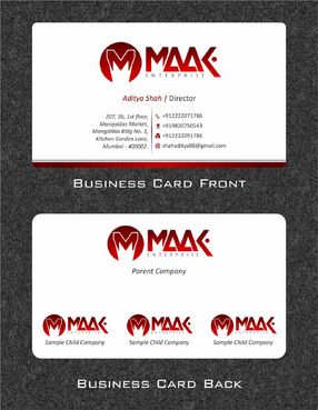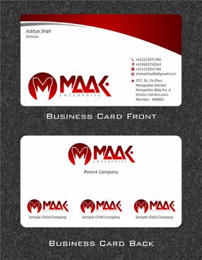 MAAK Enterprise is the parent company underwhich many other firms are going to start. So back of the card should be designed in way that i can add the name of other firms.