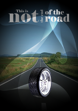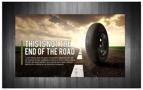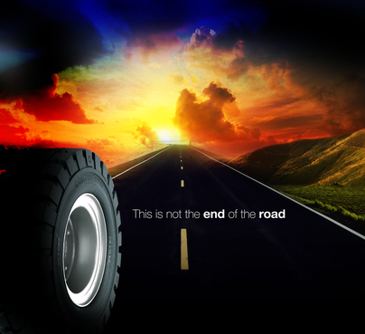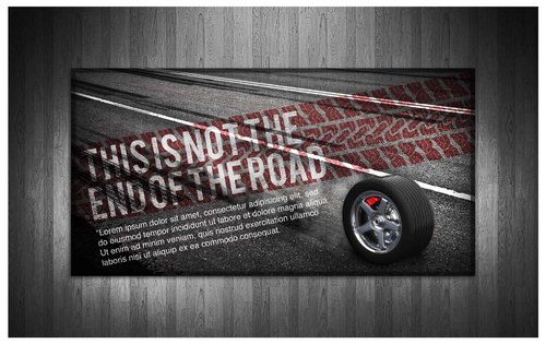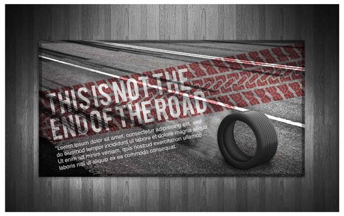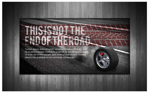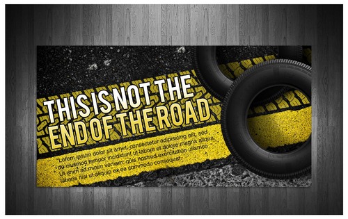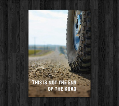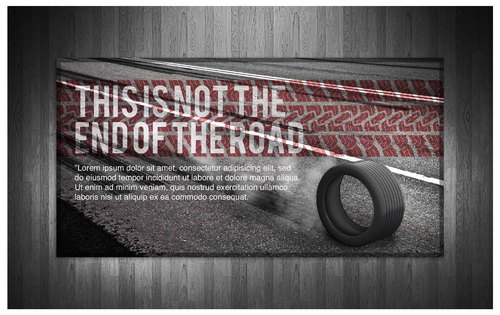 High gloss design, just a road a tyre and the slogan