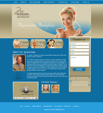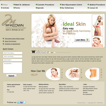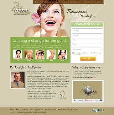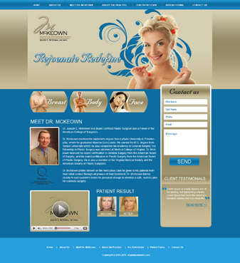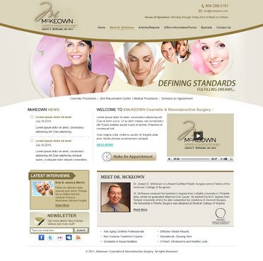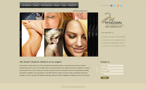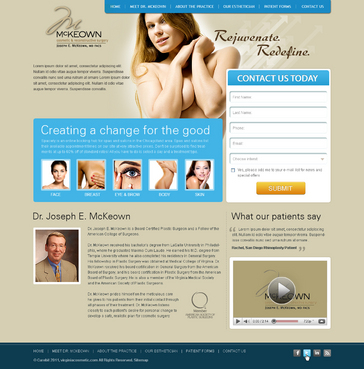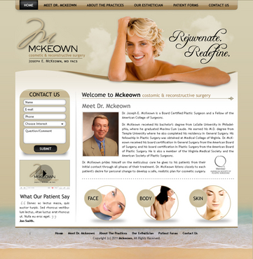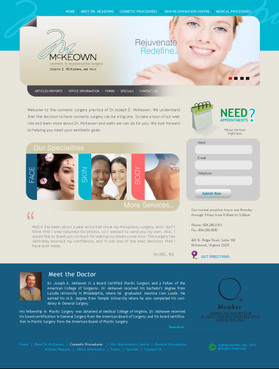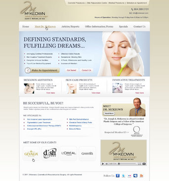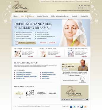 Only want home page design. There should be a rotating slideshow on the home page. Also, on the home page there needs to be reference to Cosmetic Procedures, Skin Rejuvenation Centre, Medical Procedures, Current Specials, and Schedule an Appointment. The main navigation buttons should be Home, Meet Dr. McKeown, Cosmetic Procedures, Skin Rejuvenation Centre, Medical Procedures, Articles/Reports, Office Information/Forms, Specials and Contact Us. Pixel width should be about 1,000 wide.