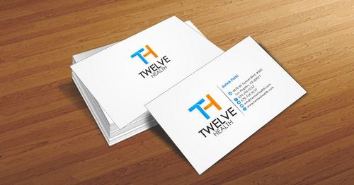 Looking for a clean, yet catchy look. Only color should be from the Logo, and font usage should be simple, yet recognizable. Colors should be just from the "TH" logo. Front of the card, outside the content of my information, should have just the "TH" logo, without the "Twelve Health".