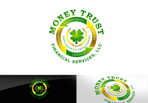 green, gold and a clover see www.moneytrustfinancials.com and https://www.google.com/search?hl=en&q=clover&bav=on.2,or.r_gc.r_pw.r_qf.&biw=1249&bih=574&pdl=300&wrapid=tljp1348540774903012&um=1&ie=UTF-8&tbm=isch&source=og&sa=N&tab=wi&ei=cBlhULeAMIuc8gTxyIH4BQ