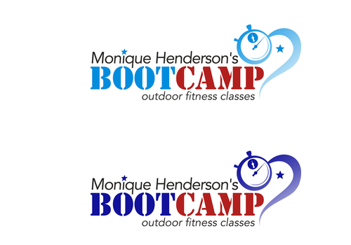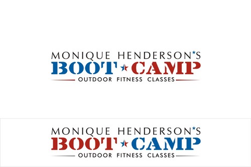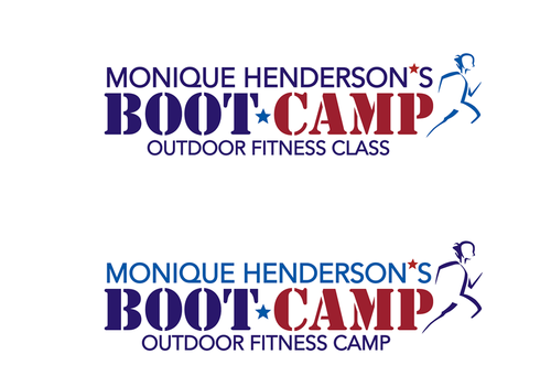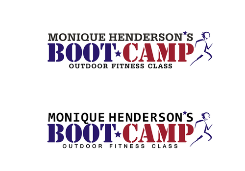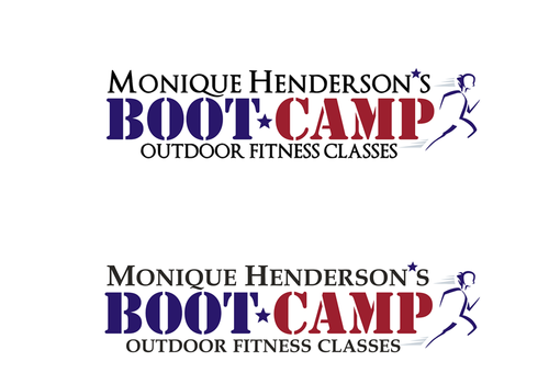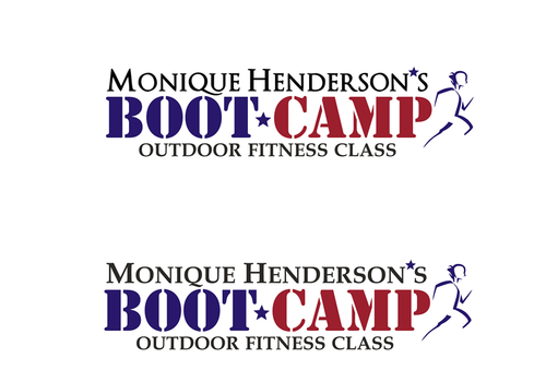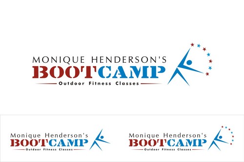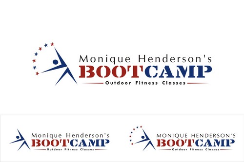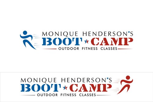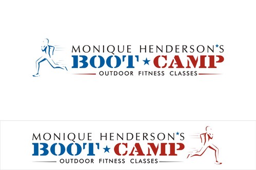 I would like to try my name in all caps and in bold and the same font as the tagline. I think the stars may be too much so the only star in the logo should be between the words "boot camp" like in #19. It would be great if this could be a red, white, and blue star. I love the abstract people in the logos and was wondering if someone could find one that looks more like the little person is running.