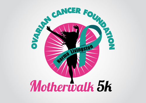 This is for a 5k to raise funds for ovarian cancer research. This is our 9th year and in the past there has just been a photo image of norma livingston with walk for her written under it. We have voted to "brand" the motherwalk with something better, more clever and interesting . It is a 5k run or walk and a 1 mile fun run. All ages participate. Along with fund raising it rallies support for ovarian cancer survivors and for the families of the women and girls who died. 22,000 women diagnosed in 2011 and 15,000 dies. This is a very deadly cancer that is difficult to diagnosis and carries a high mortality rate unless caught early which is difficult to do. It affects women of all ages. The youngest I know is 8. The majority are 35 - 75. The walk was started by Lori Livingston when her mother Norma Livingston lost her battle with ovarian cancer shortly after being diagnosed. The color ribbon used to symbolize ovarian cancer is "teal" like pink is for breast cancer. The event is a family friendly event with music, food, child craft area, etc. It last through the morning a few hours after the run is over and awards have been given out.