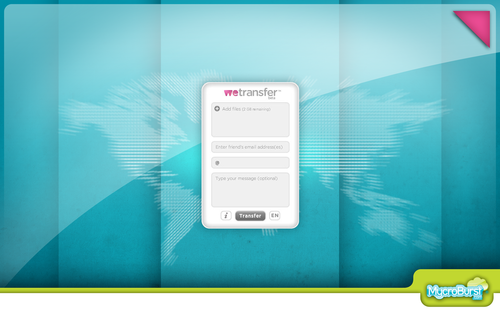 MycroBurst.com needs a creative new wallpaper advertisement to be placed on WeTransfer.com. Used by many, WeTransfer is a free online file transfer service. The site is simple in design and very user friendly. The wallpaper shouldn’t be a normal advertisement, it should be artistic! It should also embody MycroBurst, our tagline and what we are about. Be creative! Feel free to look at WeTransfer.com to get the feel for what wallpapers look like. These wallpaper ads are designed to be just like pieces of artwork. The winning wallpaper will run for 3 months on WeTransfer. The winner and 2nd and 3rd place designers also receive a free WeTransfer channel! At $120 per year, the channels allow you to have your own WeTransfer URL, customization to your site, extended file storage for 4 weeks and more! Any freelance graphic designer will instantly seem more professional with a custom file transfer website. Please note that WeTransfer has an upload box that lays over the center of the wallpaper. See uploads for the screenshot.
