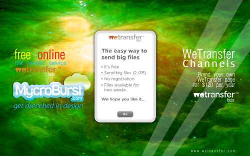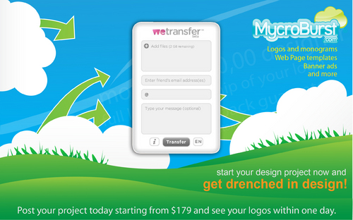 MycroBurst.com needs a creative new wallpaper advertisement to be placed on WeTransfer.com. Used by many, WeTransfer is a free online file transfer service. The site is simple in design and very user friendly. The wallpaper shouldn’t be a normal advertisement, it should be artistic! It should also embody MycroBurst, our tagline and what we are about. Be creative! Feel free to look at WeTransfer.com to get the feel for what wallpapers look like. These wallpaper ads are designed to be just like pieces of artwork. The winning wallpaper will run for 3 months on WeTransfer. The winner and 2nd and 3rd place designers also receive a free WeTransfer channel! At $120 per year, the channels allow you to have your own WeTransfer URL, customization to your site, extended file storage for 4 weeks and more! Any freelance graphic designer will instantly seem more professional with a custom file transfer website. Please note that WeTransfer has an upload box that lays over the center of the wallpaper. See uploads for the screenshot.