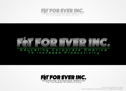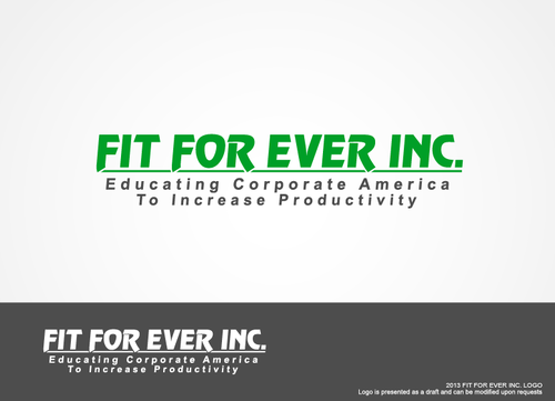 FIT FOR EVER INC. should be easy to read. Please do not put any of the words on their side and please do not replace the FOR with a 4.