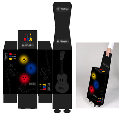Ukulele display box with trolley