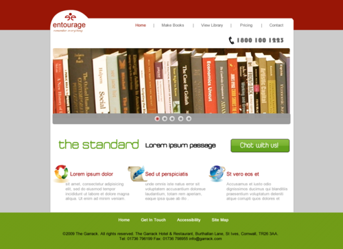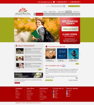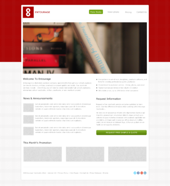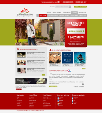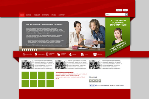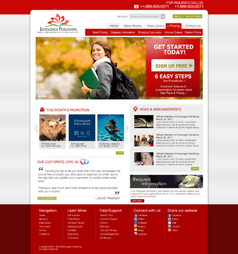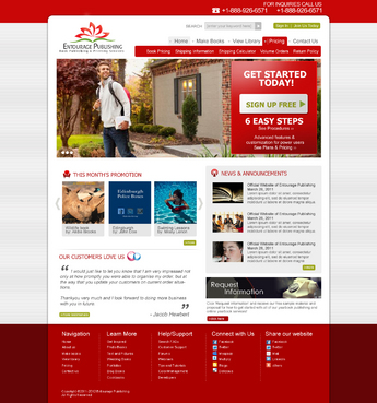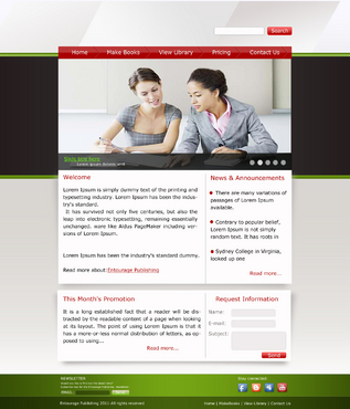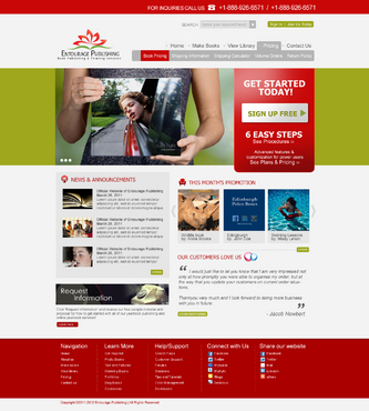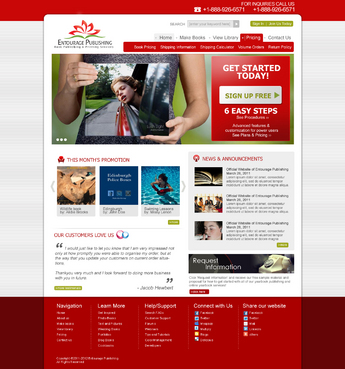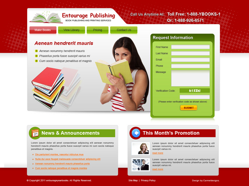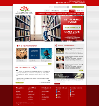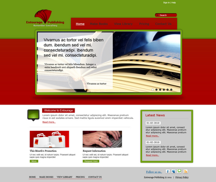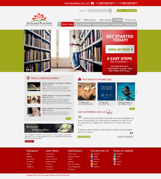 We are looking for a design of both the Logo and the website. The Logo should be in the red described above. I'd like to see a simple design featuring the following main navigation items - Make Books - View Library - Pricing - Contact Us There should be a section on the homepage for - News & Announcements - This Month's Promotion - Request Information