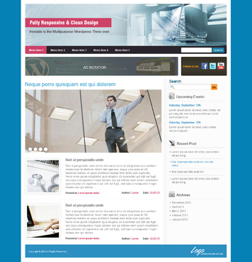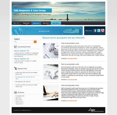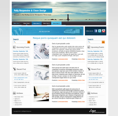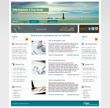 BASIC DESIGN FEATURES 1. Colors: We would like to see various color scheme options that can be used for the post titles, text, menu text, links, etc. Please keep the signature colors in mind, but be creative. We are open to new color scheme ideas. 2. Fonts: The fonts used in our theme should be simple, professional, easy to read, sans-serif, etc.. We would like the theme to offer a few font options for posts/pages/titles/links, etc.; please suggest up to five font families that the user will be able to choose from. We do not want to see Times New Roman. As a reference, we like the fonts used on these sites: - undrip.com - apple.com 3. Responsive design: compatible with mobile devices. 4. Header: This is one of our key design features, and will be seen on every page (except for where the user has the option to hide it). The header should be between 960px-1100px long, and have two different width options: the narrower one at about 200px, the wider one at about 300px. This theme will come preloaded with about 200 headers; the user will be able to set any of these, or a custom jpeg, as the header image. In front of the image will be an optional functionality for a title and tag text for the user’s website. These text spaces should have font, color, design, and justification options. 5. Background: The background is the image or color that fills up the user’s browser window behind the theme body. The user has the option to select a plain color, or one of the preloaded images. Please suggest 10-20 background textures/patterns to use as preloaded images. 6. Menus: This theme should incorporate four WordPress menus: the top nav above header, the top nav below header, the bottom nav left, and the bottom nav right. The top nav below header will be the main menu; it should be positioned directly below the header, with no space in between, and should be the exact same length as the header. Please include a search bar and/or button on the far right of this menu. 7. Ad Rotator/Social Media Slider: Each of these spaces will rotate images every few seconds. This space should be 90px in height, and both sliders together should fill the length of the theme body (the same length as the header). The Ad Rotator should be exactly 728px X 90px, and the Social Media Slider should fill the rest of the horizontal space. Both will be positioned directly below the header and main menu, with a narrow padding between the menu and the sliders, and between the sliders. Please provide designs for left-right and right-left for the two sliders. 8. Footer: This is the space at the very bottom of the theme body, and should provide a definite visual end to the body. This space is narrow, but flexible. Please design options for a Copyright message on the left and a logo on the right. 9. Sidebars: The theme will allow for the following sidebar layouts: No sidebars right sidebar only (300px) left sidebar only (300px) right and left sidebar (each 200px) TEMPLATES Default The default template will be the standard for this theme as far as look and functionality. The theme’s design characteristics are a boxed layout with defined borders; a header (see Header section), an ad rotator and a social media space below the header (see Ad Rotator and Social Media Slider sections); a 300px-width sidebar on the right side; WordPress menus (see Menus section), and a footer area (see Footer section). The Default page template will include all of these designs, as well as a page title and a text body. There should be options to use the default template with No Page Title, and with No Sidebars. Magazines There will be three layouts for the Magazine template. Each will feature a large image slider at the top that rotates the featured image for each post in a specified category as well as its title and excerpt. The three layouts will differ as follows: Mag 1: Image slider at top; below, a standard WP-style blog feed layout listing posts from a certain category, each w/small featured image, title, date, and excerpt (about one paragraph long). Mag 2: Image slider at top; below, two columns of posts: the left column will give a list of the latest posts, each w/small featured image, title, and date; the right column will give a similar list, but only of posts from a certain category. Mag 3: Image slider at top; below, allow for 1-5 vertical sections for 1-5 different categories of posts. Each category section will be divided into two columns of posts: the left column will show a medium-sized featured image, title, date, and excerpt for one post in a certain category; the right column will show a list of posts in that category, each with a small featured image, title, and date. Refer to http://demo.awesem.com/?theme=deadline for design ideas. Portfolios Each layout will show featured image from selected posts. We would like two styles for each layout below: one with the title, subtitle, and excerpt from the post; the other with only the images. 1-column layout 2-column layout 3-column layout 4-column layout Sales Page The Sales page is a simplified landing page. There will be one Sales page template. It will be made up of a title and text body, and the following width and layout options. Width options: Full width blank page 700px-width blank page 500px-width blank page Layout options: Custom header No header No menus No footer No sidebars Squeeze Page The purpose of a squeeze page is to persuade the user to subscribe or sign up for a product or service. The template should include a title, a space for a video, a text space for a description of the video, a space for an opt-in form, and an optional text body. It should have width and layout options similar to the Sales page, but without the full width option, as follows: Width options: 700px-width 500px-width Layout options: Custom header No header No menus No footer No sidebars About Us/Contact Page Use your imagination!