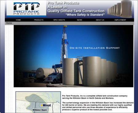 Pro Tank Products is a leader in quality oilfield tank construction. We offer superior product at the lowest possible cost to meet the booming oil business in North Dakota and Montana. Our techicians have decades of experience and we are expanding our business each year. We are speaking to top-level oil executives as well as those in the field. Our website needs work as well, but can be used to get an idea of our business at www.protankproducts.com