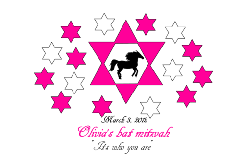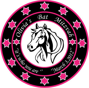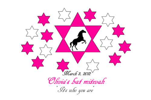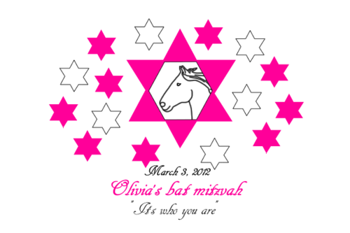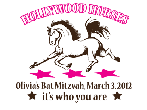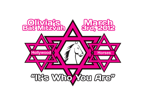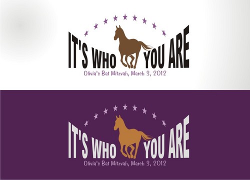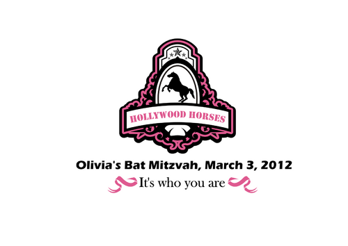 Olivia's bat mitzvah party (the party after the jewish ceremony when a girl turns 13 years old). The party theme is "Hollywood horses" and the design text (both options) is from the theme song from the movie Secretariat ("It's who you are"). See the music video online for inspiration.