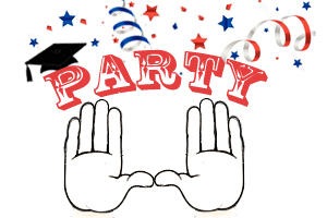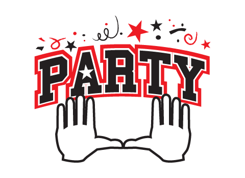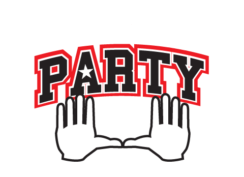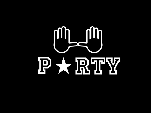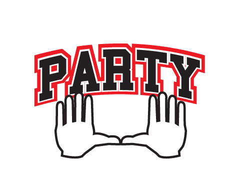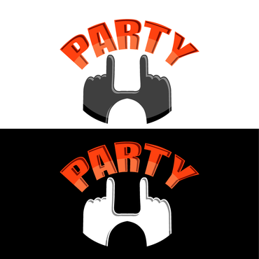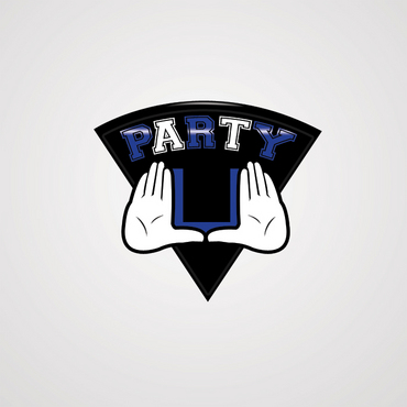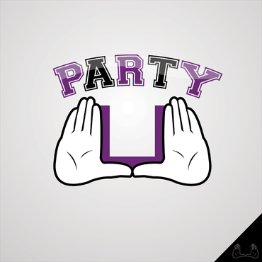 I want to incorporate the logo to like similar to the University of Miami football hand logo. Meaning: whenever Miami scores a touchdown, the players raise their hands to create a "U." I want two silhouette hands creating the "U," with the word PARTY in block/college style letters in the middle. I prefer the hands to not be flesh colored, rather them be outlined and have them be white in the middle. This was kind of the logo I was looking for without the arms and the gloves.