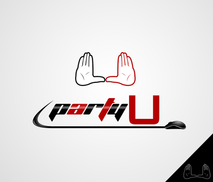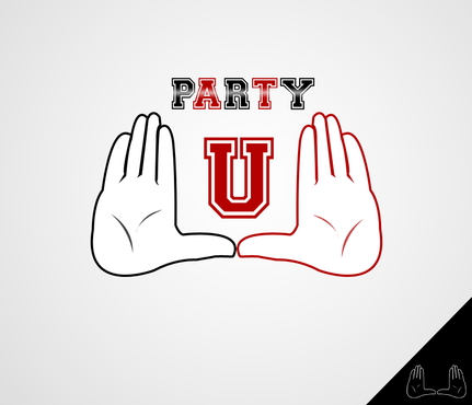 I want to incorporate the logo to like similar to the University of Miami football hand logo. Meaning: whenever Miami scores a touchdown, the players raise their hands to create a "U." I want two silhouette hands creating the "U," with the word PARTY in block/college style letters in the middle. I prefer the hands to not be flesh colored, rather them be outlined and have them be white in the middle. This was kind of the logo I was looking for without the arms and the gloves.