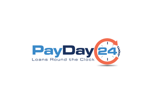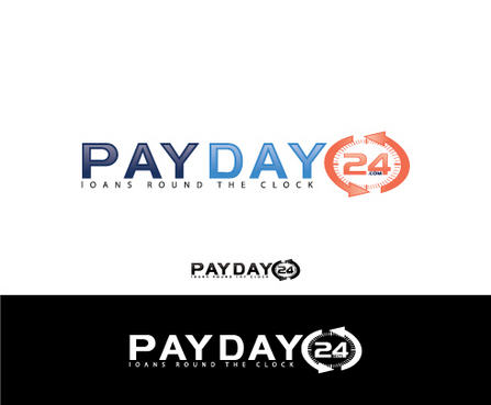 Our vision is that the brand "PayDay24.com" will be as a full word in the logo. We do not want to symbolise it like "pd24" or anything shortened. We want that it could be readable as "PayDay24" and the ".com" part somewhere nearby in smaller size. Our tagline is "loans round the clock", so we would like that to be under the logo.
