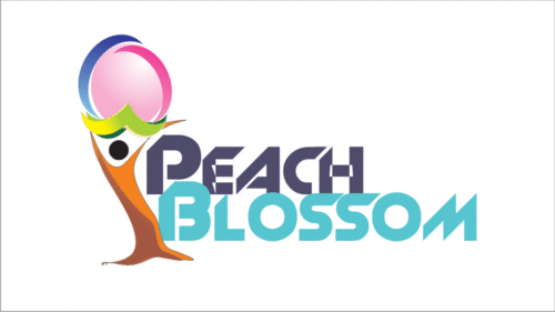 Peach Blossoms grow on trees and not from the ground. With that, I have had a lot of trouble finding the right look. The only example I have found that I remotely like is http://www.cherryblossomcreations.com/ - however- I don't like how the logo droops over but I do like how the name is on both sides splitting the tree.