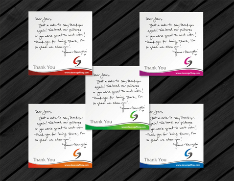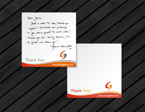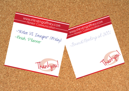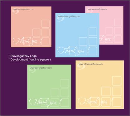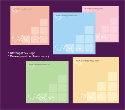 In need of designs for 3inch x 3inch Post It Notes. Company Branding and Image (professional, high energy, uplifting, splash of color) The words "Thank You" and company website (www.stevengaffney.com) must be included on actual post it.