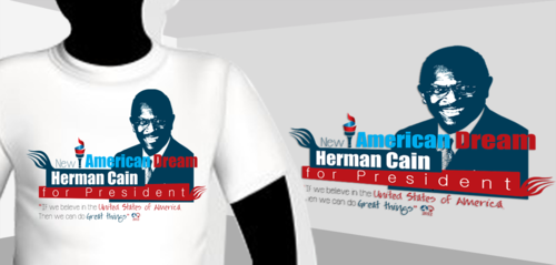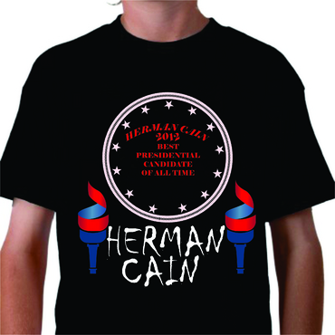 T-shirt design needed in support of Herman Cain, geared towards the 2012 election. In your design you may display his name, likeness, any relevant taglines or slogans that Herman Cain is known for - or create your own. We are looking for a unique, creative, fashion-forward design, so go beyond the typical campaign T-shirt. Your design should be original (and can span any style, such as illustration, purely graphic, abstract etc.) and should not look like other Cain T-shirts you’ve seen on the market. Think in the mind of the T-shirt buyer – if you were shopping for a Pro-Cain T-shirt, what would make you pull the trigger and buy?