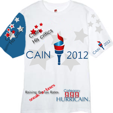 T-shirt design needed in support of Herman Cain, geared towards the 2012 election. In your design you may display his name, likeness, any relevant taglines or slogans that Herman Cain is known for - or create your own. We are looking for a unique, creative, fashion-forward design, so go beyond the typical campaign T-shirt. Your design should be original (and can span any style, such as illustration, purely graphic, abstract etc.) and should not look like other Cain T-shirts you’ve seen on the market. Think in the mind of the T-shirt buyer – if you were shopping for a Pro-Cain T-shirt, what would make you pull the trigger and buy?