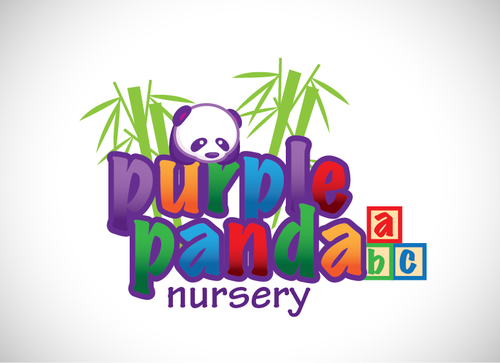 Different sizes for the lettering and almost child-like writing would convey that this is a nursery. Perhaps the addition of other objects, such as a kite, around the lettering would convey the same thing. Anything related to education, such a books, could perhaps rest on some of the lettering. We want to convey children PLUS education. Perhaps the panda logo could read a book.