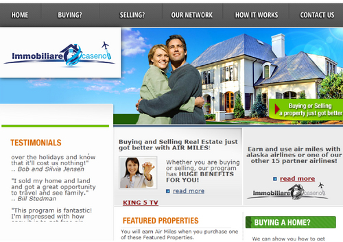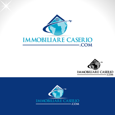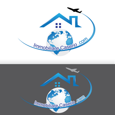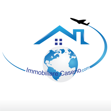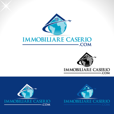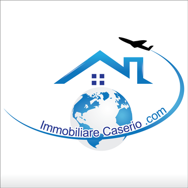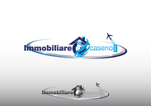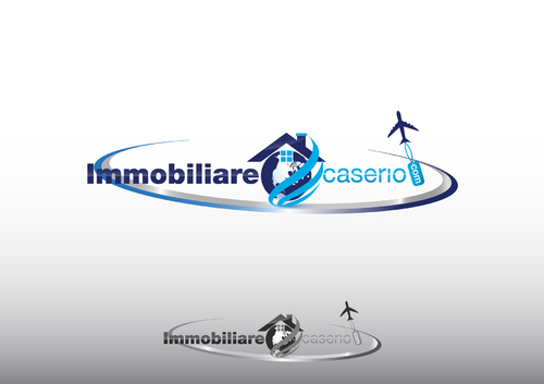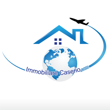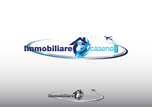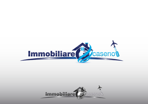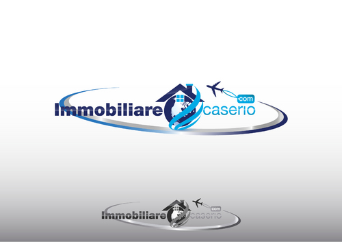 the words "miles" and "realestate.com" have to be deleted; the text "immobilarecaserio.com" follows the jet trails line; instead of the "4" I would have a globe; the roof of the house has to be snaky with a chimney. The micro tagline has to be deleted. Ideas are welcomed