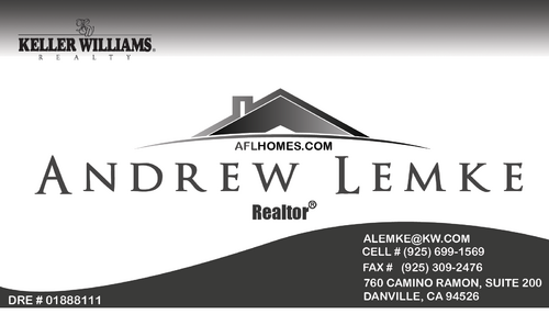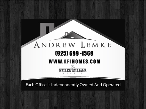 Please Make my logo (Andrew Lemke) the main focus. MAke the Keller Williams logo a lot smaller than my logo. Also if you can change my web address AFL color to Grey as the same in my house logo(Andrew Lemke) and keep HOMES.com black. Info in order for my for sale and open house sign. For Sale Sign: My Logo on top (BIG) (925) 699 -1569 AFLHOMES.COM (AFL grey color) Keller Williams Logo (Small) Each Office Is Independently Owned And Operated (Fine Print Very small at bottom of sign) Open House Sign: My Logo on Top (BIG) Arrow pointing in one direction (Solid Color) with OPEN HOUSE within arrow. AFLHOMES.COM (AFL grey color) (925) 699 -1569 Keller Williams Logo (Small) Thanks