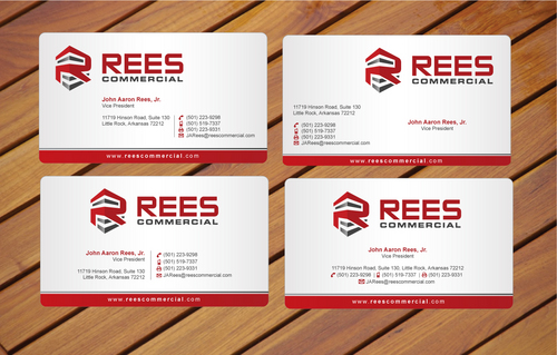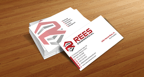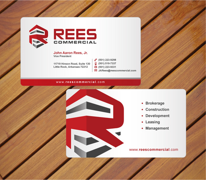 Put the Rees Commercial logo on the back of the card or just the "R" part of the logo. We also want the following listed for our services: Brokerage, Construction, Development, Leasing, Management