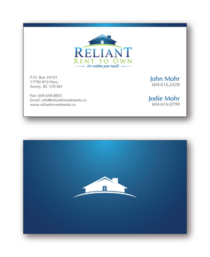 On front- white background with small logo and our contact info. John's # is 604.616.2428, mine is the other. would like all the colors to be the same as logo and info in blue. Back- blue background with large logo. I would also be interested in simply seeing what you all come up with as you know what looks best-so feel free to do something different than what I said and we'll go from there. Thank you.