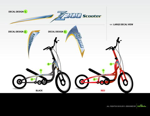 Full graphics and design for scooter decals.Scooter Model # Z300. There are two colors: red and black. Please see the uploads section for photos of the product. The labels or decals are what we are wanting designed. Decal design for exciting and unique new scooter concept.