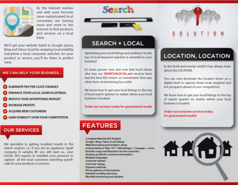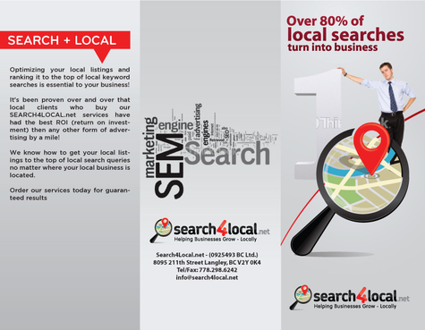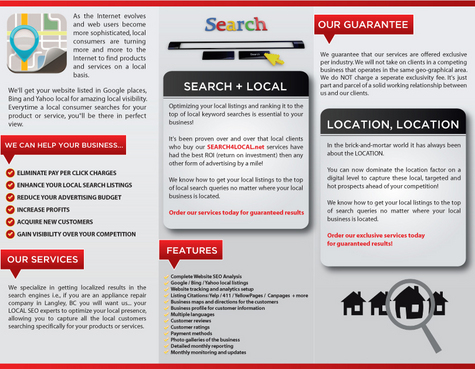 The brochure needs to demonstrate confidence, affordability, and exclusivity. The text for the brochure can be found on the website search4local.net The design can be a 3 fold or rack card style… whatever turns out best