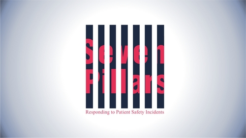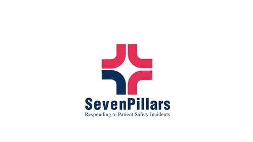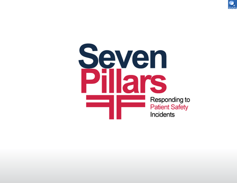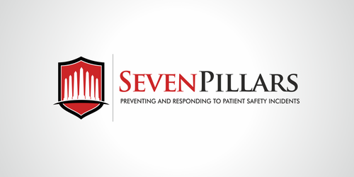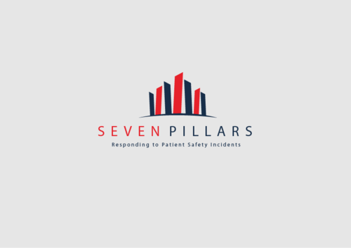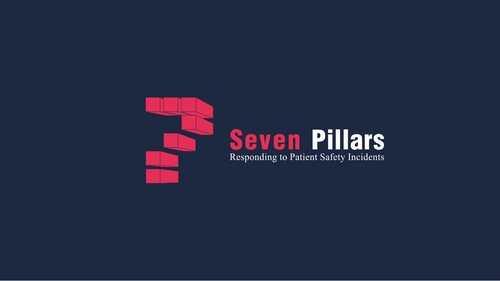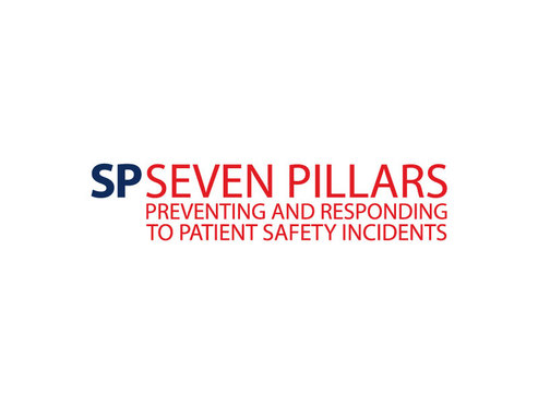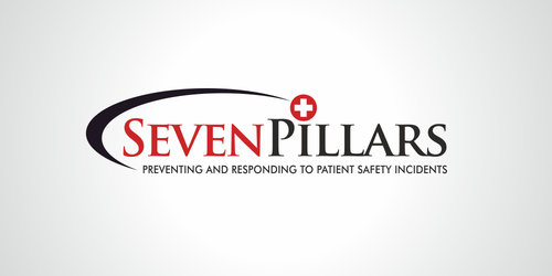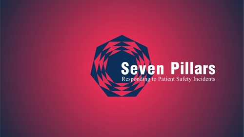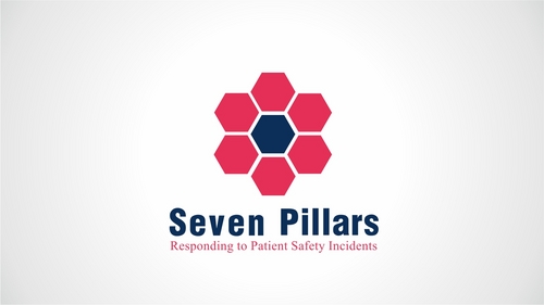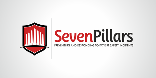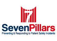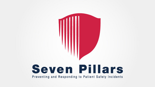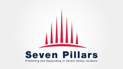 This logo symbolizes the Seven Pillars program, which is an approach to responding to unexpected harm events in hospitals. The seven pillars are: (1) patient safety incident reporting; (2) Investigation; (3) Communication and disclosure; (4) Apology and remediation; (5) System improvement; (6) Data tracking and performance evaluation; (7) Education and training