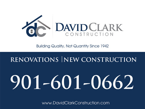 Sign must include logo, phone number (901-601-0662) and possibly the web address www.DavidClarkConstruction.com