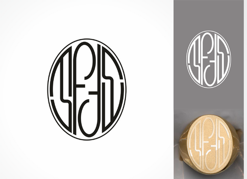 This is a monogram for a men's signet ring. Combine the initials MFDS into a single monogram that will be used in an oval or rounded corner square ring face.