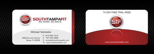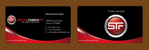 Looks good so far...I want the back of the card to be either black or red, not white...and on the back i want the stf icon and the verbiage "south tampa fit" all on the same line.