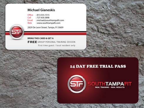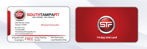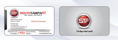 Everybody...Please check the brief...i have just added two new files...the first one (Back of the card) is how I would like the format of the back of the card to look...notice the I would the STF logo and verbiage of SOUTHTAMPAFIT to all be on the same line...also 14 Day Free Trial Pass needs to be bigger and bolder. Thanks for your help! Please message me if you have any more questions