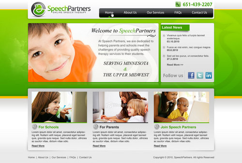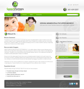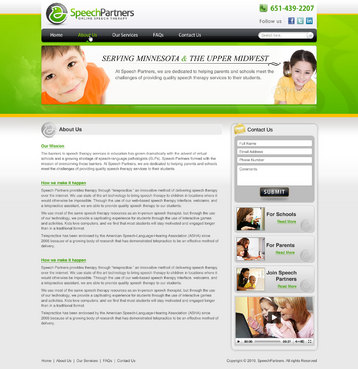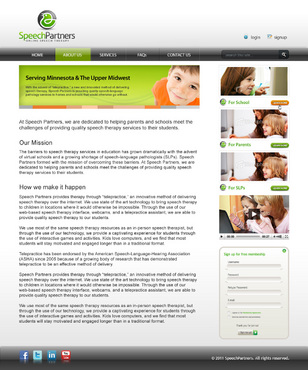 Speech partners is creating a website to be used as our primary method of communicating our services to potential customers as well as attracting potential employees/therapists. We are an educational speech therapy company offering speech therapy through web based conferencing technology. Our customers are primarily the administrators of public and private K-12 schools as well as parents.