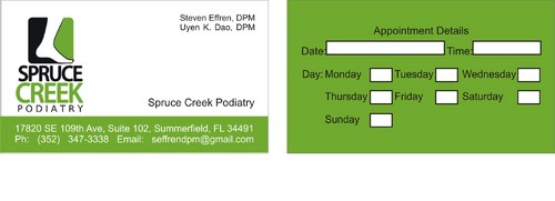 Front of Card should also have names of doctors: Steven Effren, DPM Uyen K. Dao, DPM
